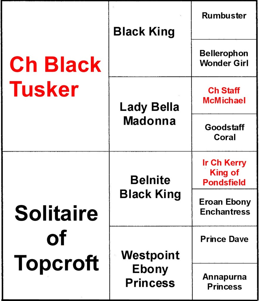 The judge at the rally was Flo Latham, so her decision to give Popsy the puppy class might be interpreted as being a tad biased, but I don’t think so, she’s a model of integrity. During proceedings a young chap came rushing over, he seemed quite impressed with Popsy and asked me who the sire of our puppy was. I had to think for a second before replying. The sire of Popsy was Ch Black Tusker and this fellow was Norman Berry.
