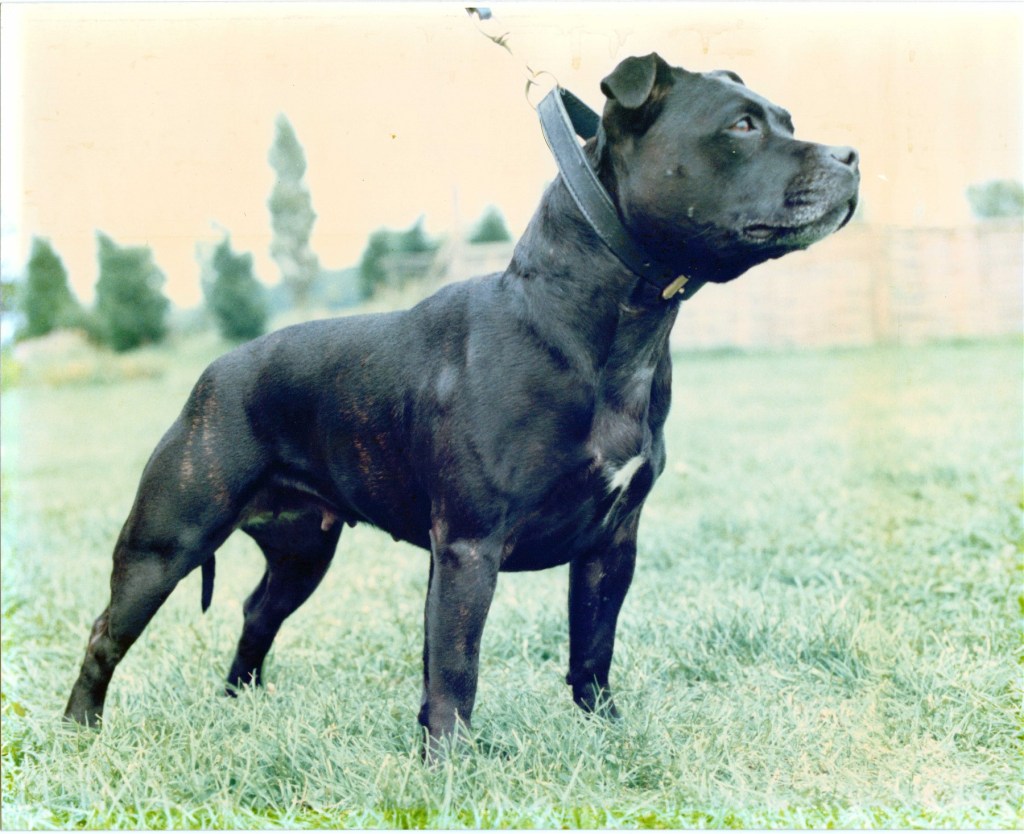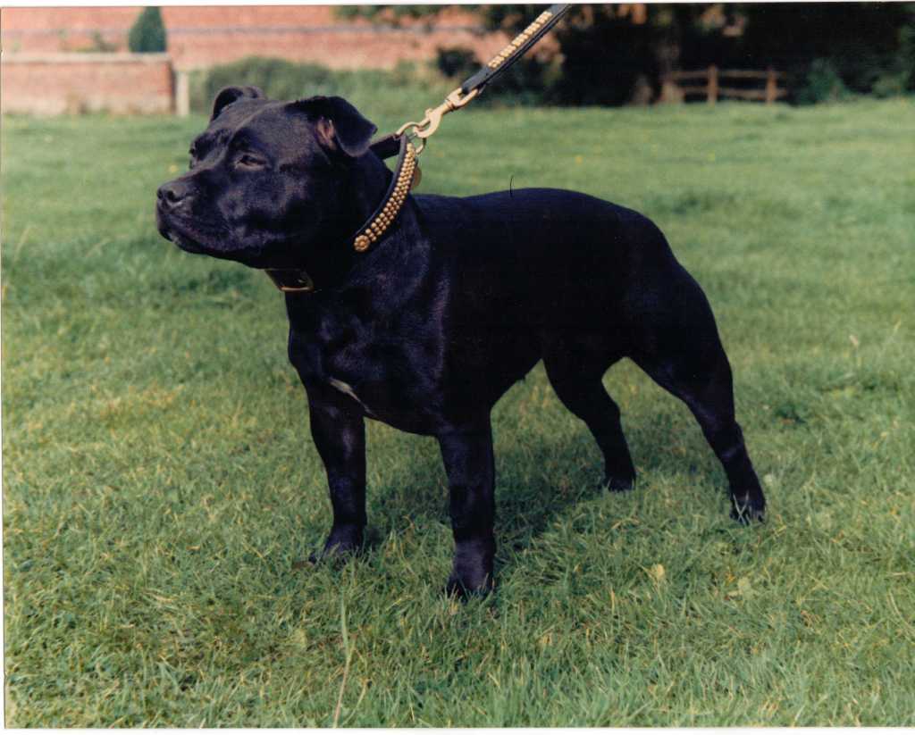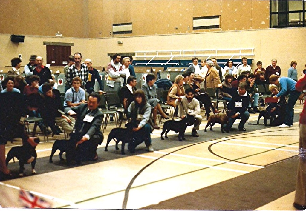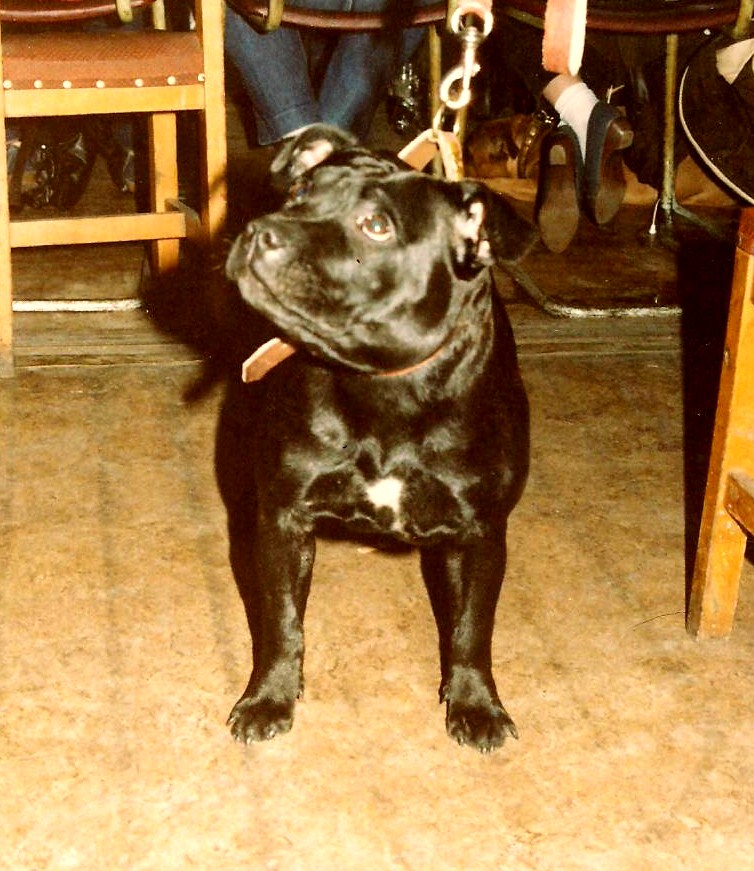 A couple of things about this Newark show – entered in the Veteran class was Ch Black Tusker, now aged 10 – he got a standing ovation as he paraded around the ring, quite a thrill. After the show a “do” had been arranged, all-comers welcome, a veritable who’s who of Stafford fanciers, we could only watch and gawp.